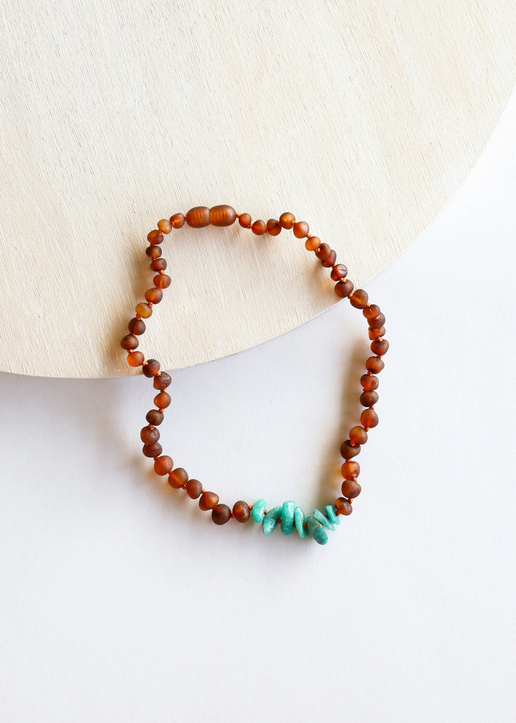 Raw Cognac Amber + Raw Green Amazonite | 16" Necklace